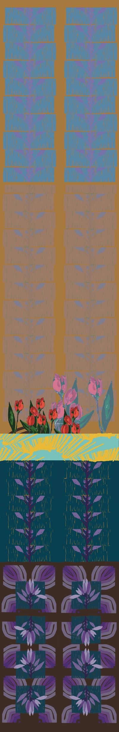 Su composición es ascendente. Desde abajo emerge el pantano —el marrón que representa lo estancado— acompañado de flores lilas: la respuesta que empieza a nacer aun dentro del barro. Desde ahí, la energía asciende hacia el color, la presencia y la vida.